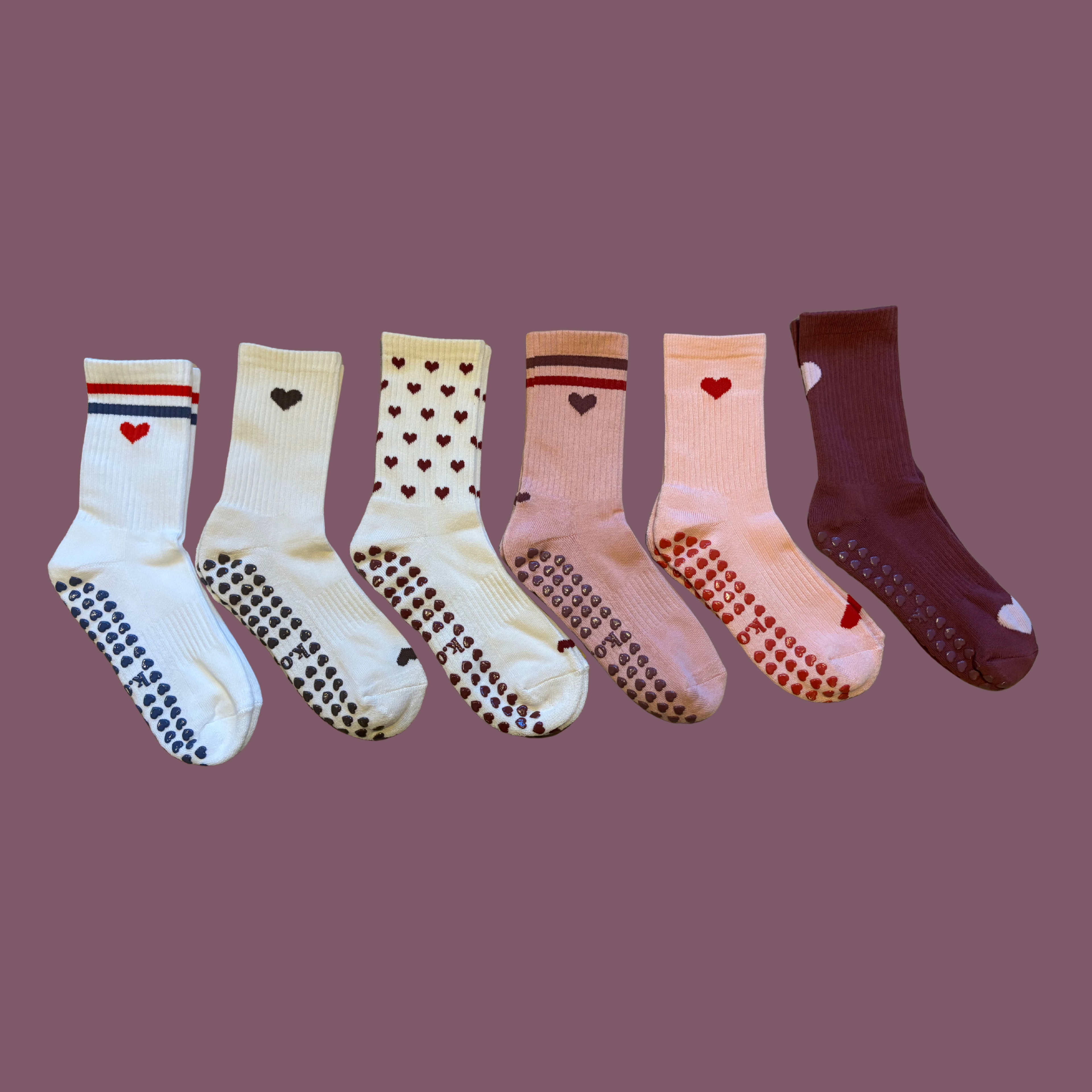 k.o.r.r. Dark Plum Heart Grip Socks